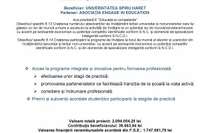Universitatea „Spiru Haret”, prin Facultatea de Științe Juridice, Economice și Administrative Craiova, în calitate de beneficiar, în parteneriat cu Asociația Engage in Ed...